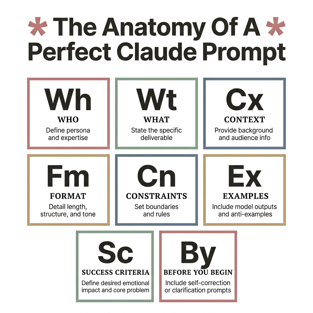 Sebuah infografis berjudul “The Anatomy Of A Perfect Claude Prompt” beredar di linimasa belakangan ini. Isinya delapan komponen yang, jika dirangkai dengan baik, mengubah pertanyaan biasa menjadi instruksi yang menghasilkan output berkualitas. Yang menarik dari infografis itu bukan kebaruannya, melainkan kesederhanaannya. Ia mengonfirmasi sesuatu yang sebenarnya sudah lama diajarkan dalam panduan resmi Anthropic, bahwa kualitas prompt adalah investasi waktu yang nyaris selalu terbayar.